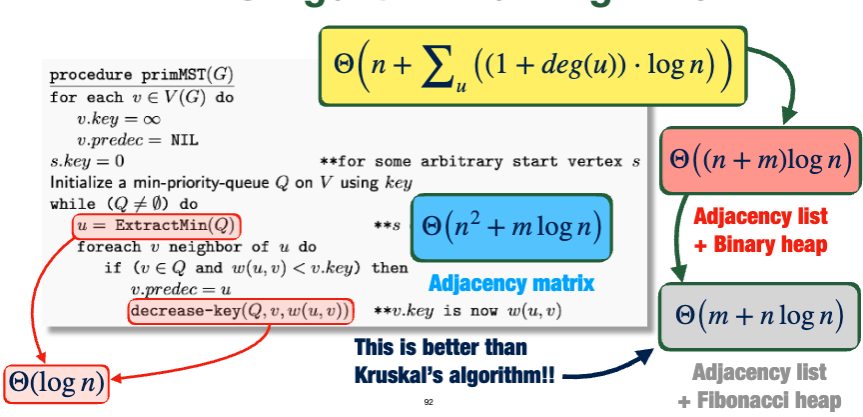 - So, these options get worse the more edges there are (i.e. in dense graphs where \(m\to n^2\)), but better in sparse graphs