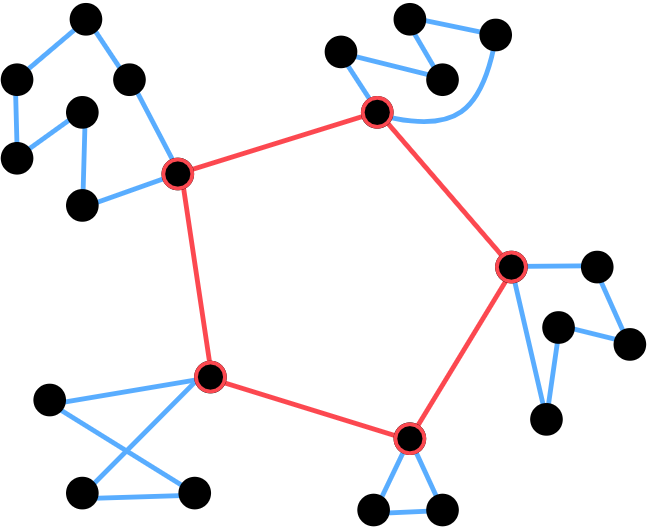 A clique\(C\) is subgraph of graph \(G\) that is a complete graph, i.e. \(C\simeq K_m\) for some \(m\leq \# V(G)\). The size of the largest clique in \(G\) is denoted \(\omega(G)\).