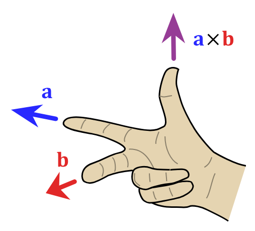 Cross product (\(\mathbb{R}^3\)): \(\vec{a}\times \vec{b}\) is vector \(\vec{c}\) such that \(\vec{a}\cdot \vec{c}\), \(\vec{b}\cdot \vec{c}\) \(=0\), i.e. \(\vec{c}\) is orthogonal to both \(\vec{a}\) and \(\vec{b}\).